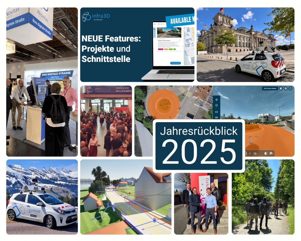 Aufbauend auf den Innovationen aus 2024 haben wir im Jahr 2025 den Fokus auf kontinuierliche Verbesserungen von Benutzerfreundlichkeit, Leistungsfähigkeit und Integrationen gelegt. Hervorzuheben sind die neue Content Version 3.0 generiert mit unserem brandneuen Erfassungssystem «SMARIX», die infra3D Platform-Erweiterungen wie «Projekte» und «Administration» sowie neue Software-Features mit erweiterten Mess- und Exportfunktionen und optimierte Integrations-Schnittstellen. Ergänzt wurde dies durch die Einführung von infra3D Flex, das die Digitale Strasse neuen Interessensgruppen wie Ingenieurbüros, Versorgungsbetrieben und Versicherungen flexibel, zeitlich begrenzt zugänglich und nützlich macht.